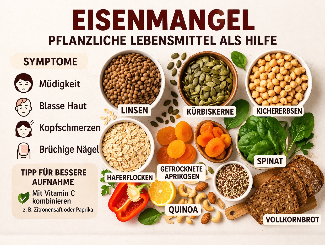 Eisenmangel: Ursachen, Symptome & die besten pflanzlichen Eisenquellen